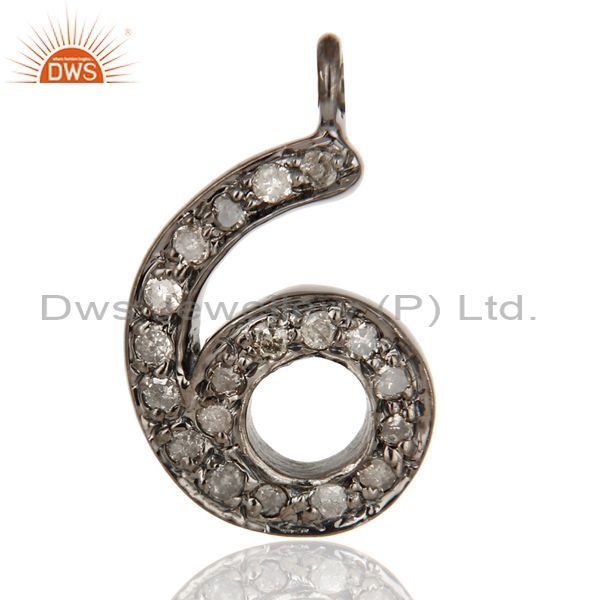 Black Sterling Silver Pave Diamond Block Number Charms Jewelry - 6