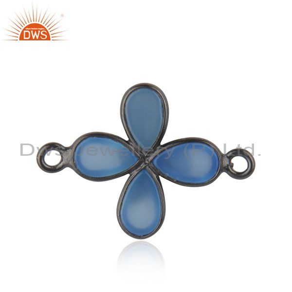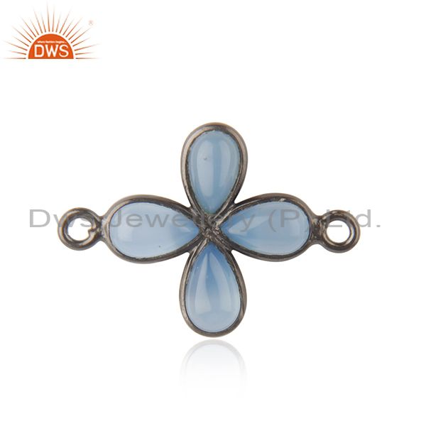 Blue Chalcedony Gemstone Black Brass Fashion Jewelry Findings Jaipur
