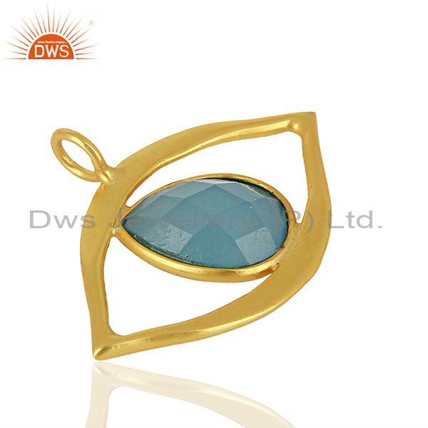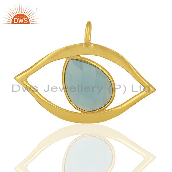 Blue Chalcedony Gemstone Gold Plated Silver Evil Eye Pendnat Finding