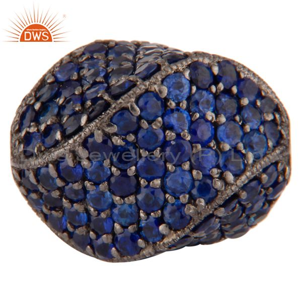 Blue Sapphire Gemstone Studded 925 Sterling Silver Bead Finding Jewelry