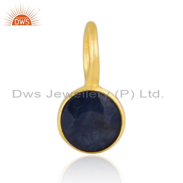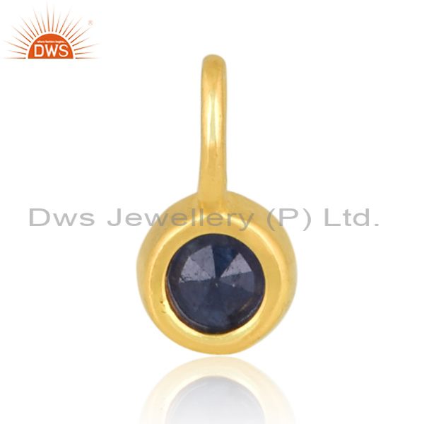 Blue Sapphire Set Gold On Silver Classic Handmade Pendant
