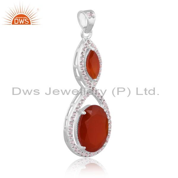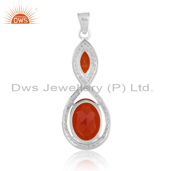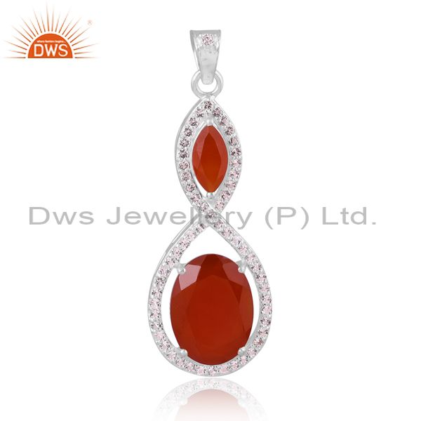 Carnelian And White Topaz Set Fine Sterling Silver Pendent