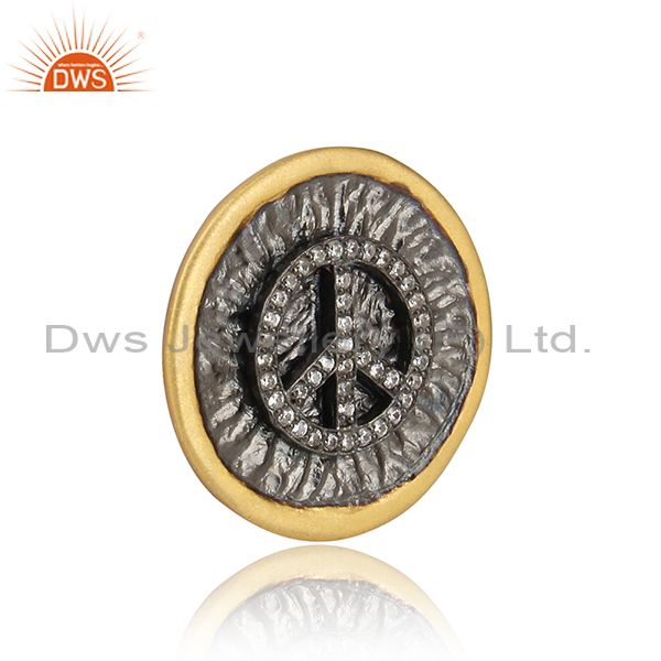 Cubic Zirconia Peace Sign Silver Gold Plated Brooch