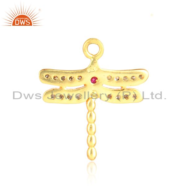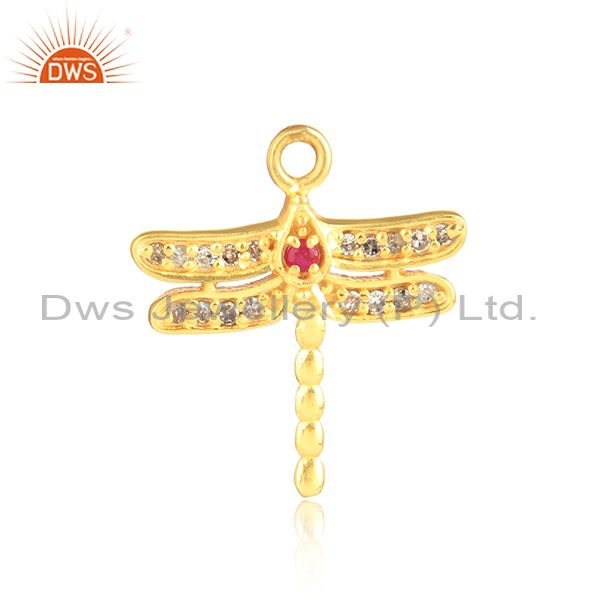 Designer Dragonfly Diamond Charm In Yellow Gold On Silver And Ruby