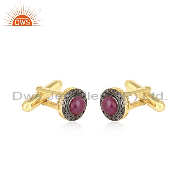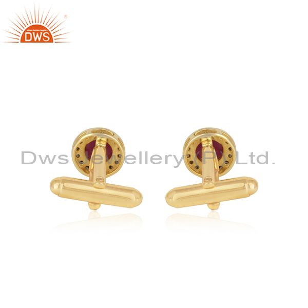Designer Ruby Diamond Cufflinks in Yellow Gold on Silver 925