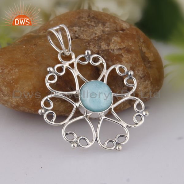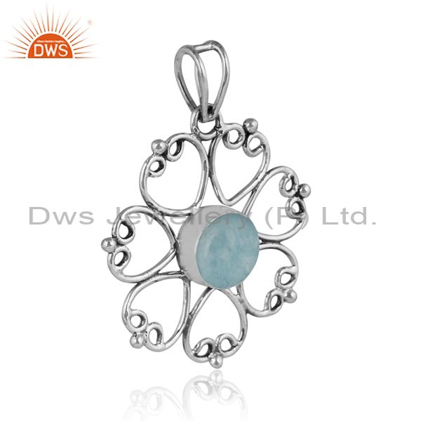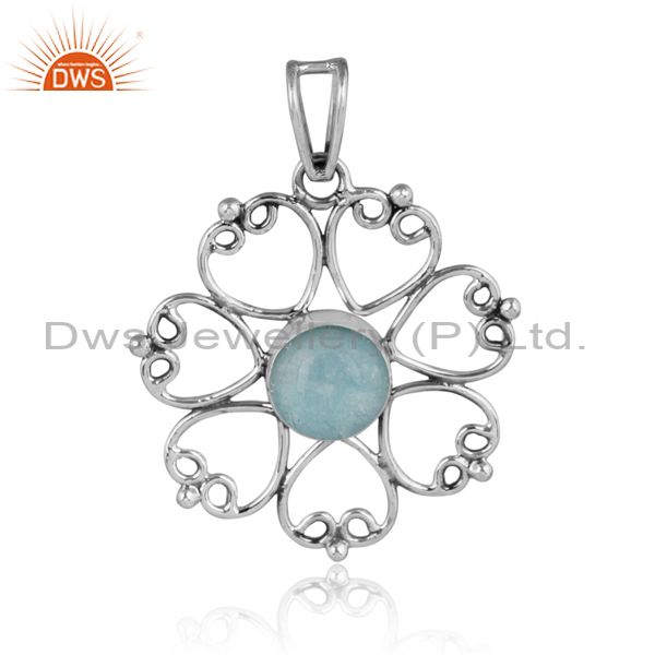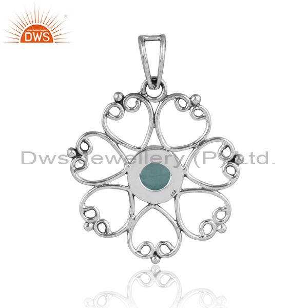 Doublet Amazonite Crystal Set Oxidized Silver Floral Pendant