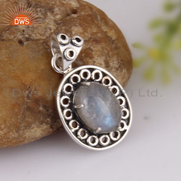 Doublet Labradorite Crystal Set Oxidized 925 Silver Pendant