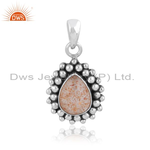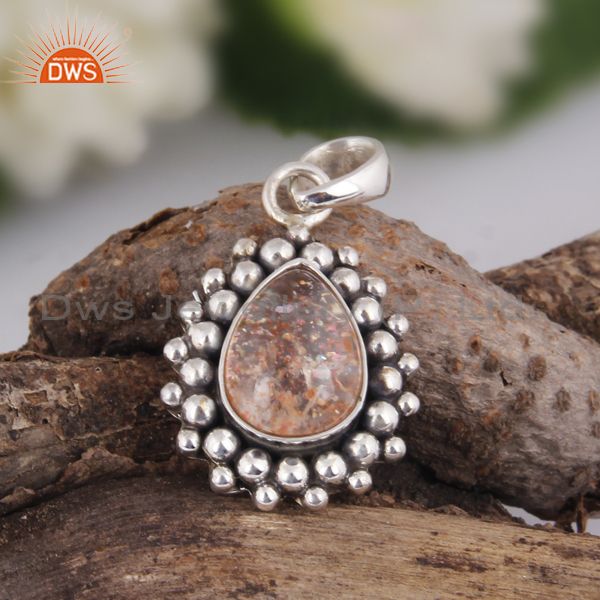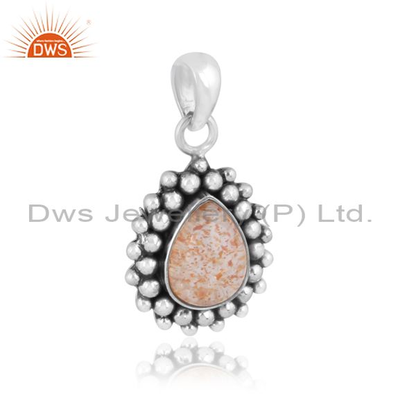 Doublet Sunstone Crystal Oxidized Silver Pear Cut Pendant