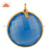 Dyed Blue Chalcedony Gold Plated Sterling Silver Bezel Set Connector
