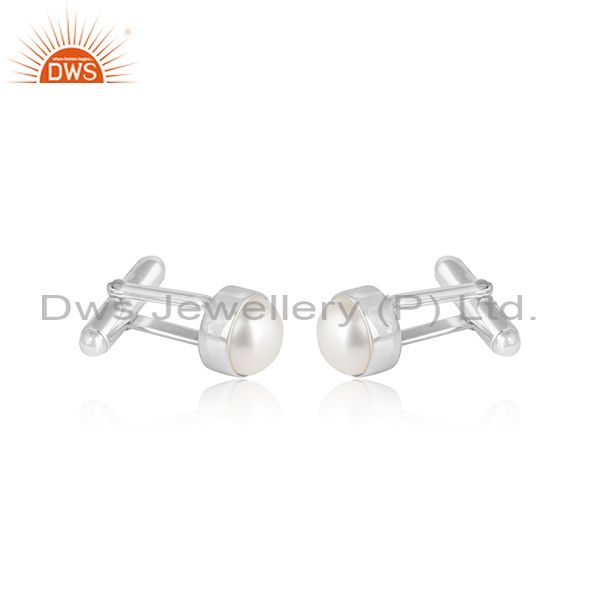 Elegant Sterling Silver Cufflinks Adorn With Pearls