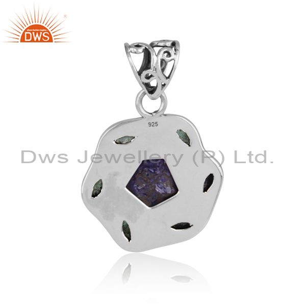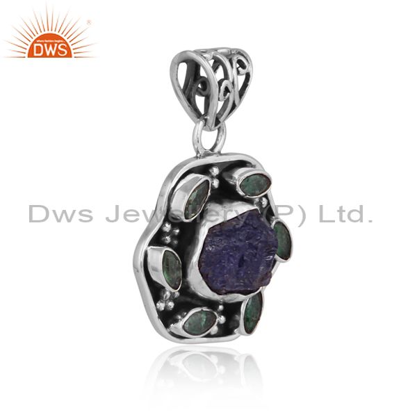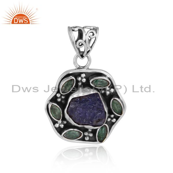 Emerald And Tanzanite Set Oxidized Silver Designer Pendant