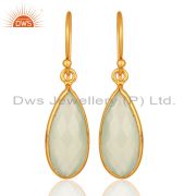 Faceted Green Chalcedony Gemstone Gold Plated Sterling Silver Connector Jewelry