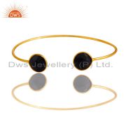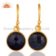 Faceted Natural Blue Corundum Gemstone 18K Gold Plated Sterling Silver Connector