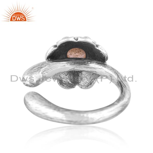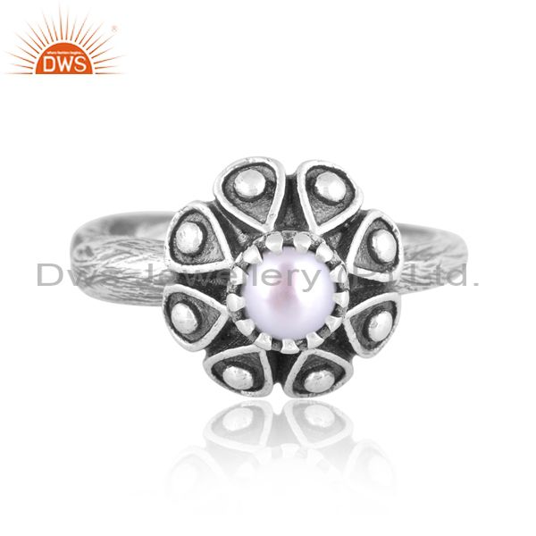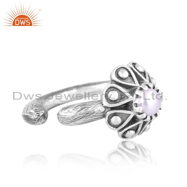 Floral Antique Sterling Silver Ring With Pearl Cabochon Gem