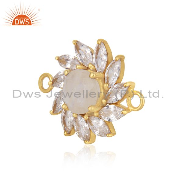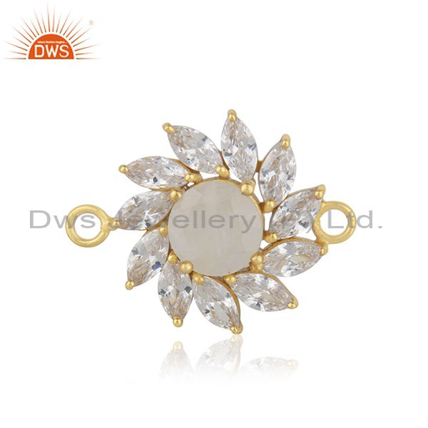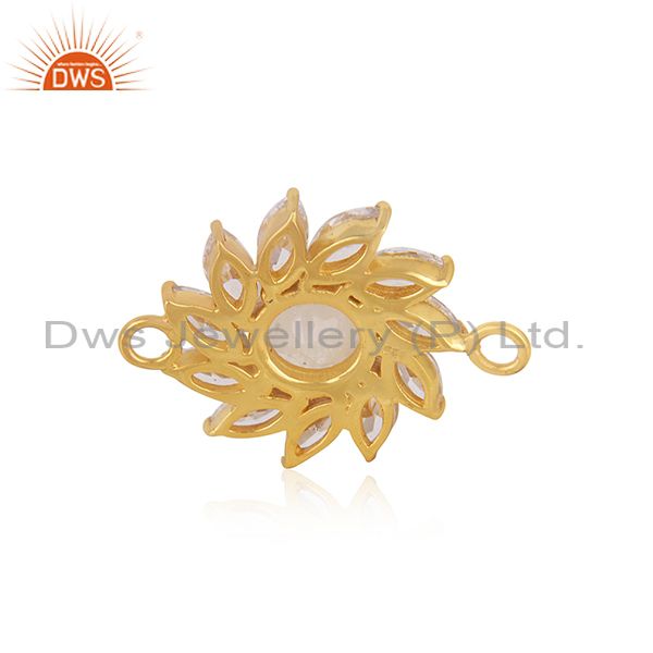 Floral Gold Plated 925 Silver CZ Gemstone Connector Jewelry Supplier