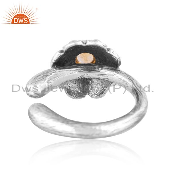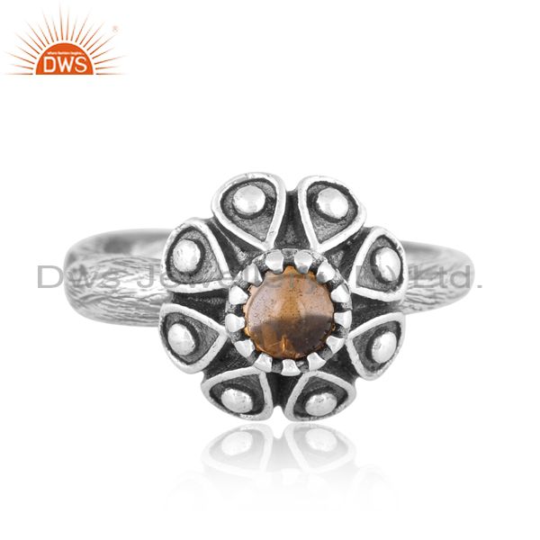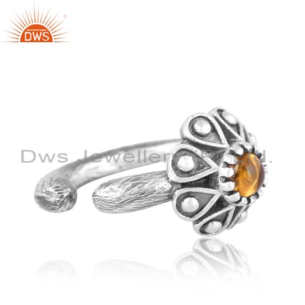 Floral Silver Sterling Silver Ring With Citrine Gemstone