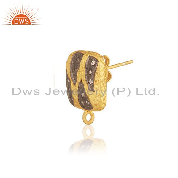 Gold Plated Brass White Zircon Stud Earrings Jewelry Findings Manufacturers