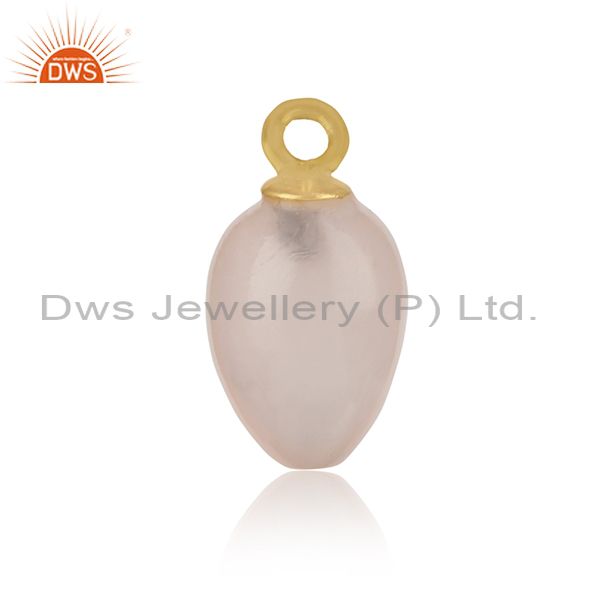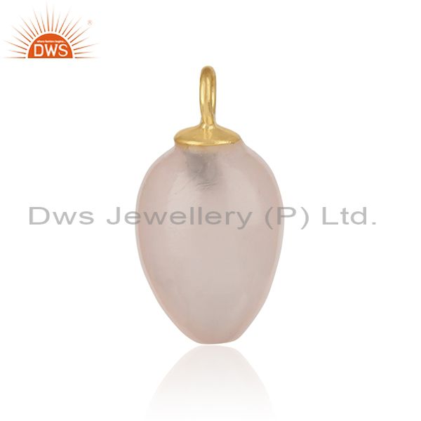 Handcrafted Rose Quartz Charm In Yellow Gold Over Silver 925