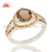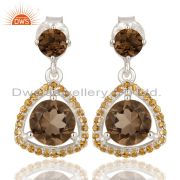 Handcrafted Sterling Silver Citrine And Smoky Quartz Prong Set Pendant
