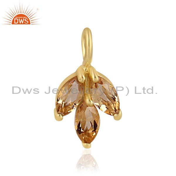 Handmade Citrine Set Gold On Silver Designer Classic Pendant