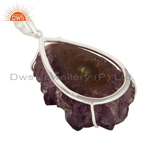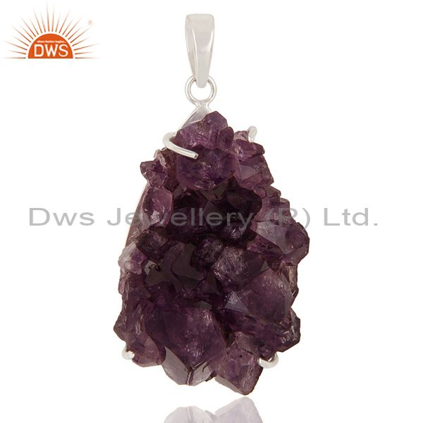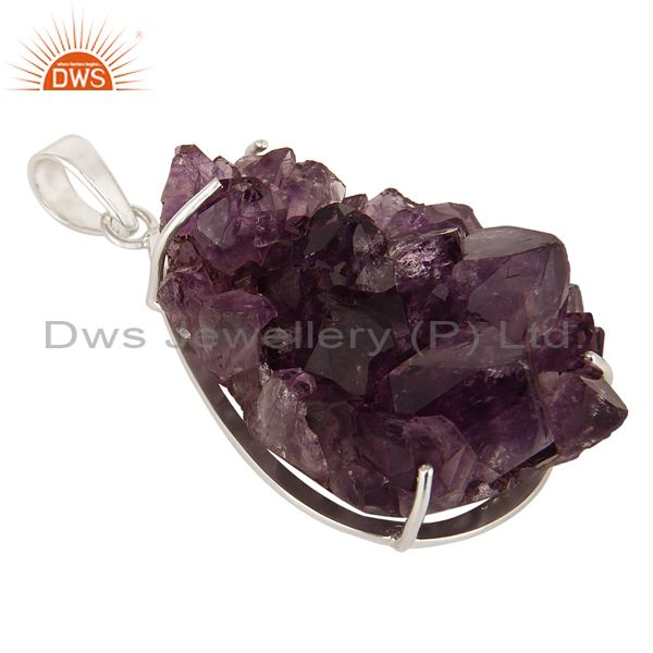 Handmade Solid Sterling Silver Amethyst Cluster Druzy Prong Set Pendant