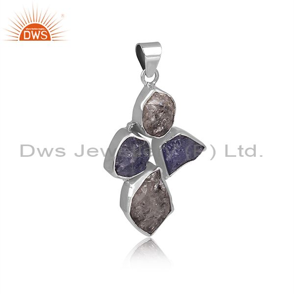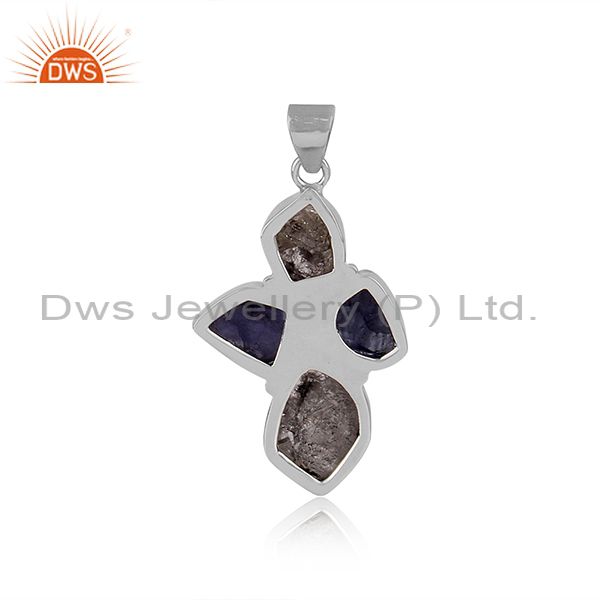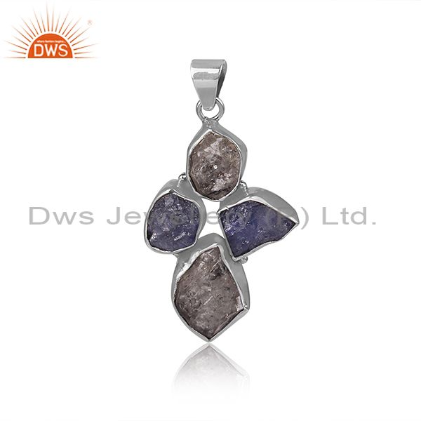 Herkimer Diamond And Tanzanite Set Oxidized Silver Pendant