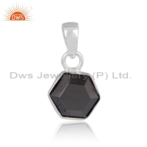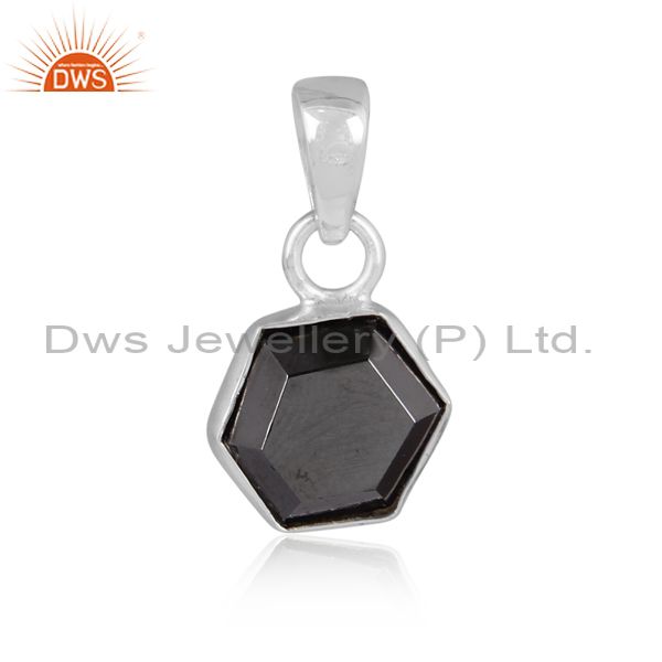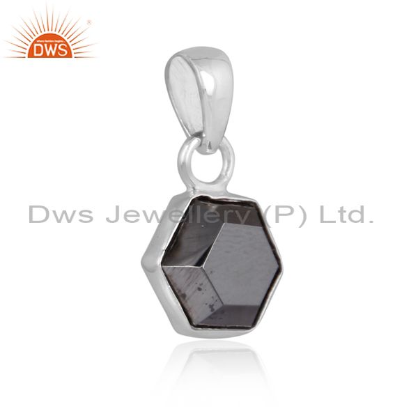 Hexagonal Hematite Set Fine Sterling Silver Classic Pendant