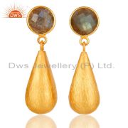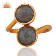 Labradorite Sterling Silver Faceted Gemstone Bezel-Set Connector With Gold Verme