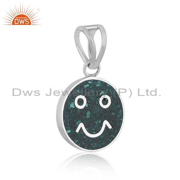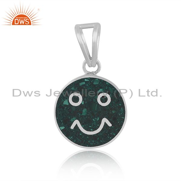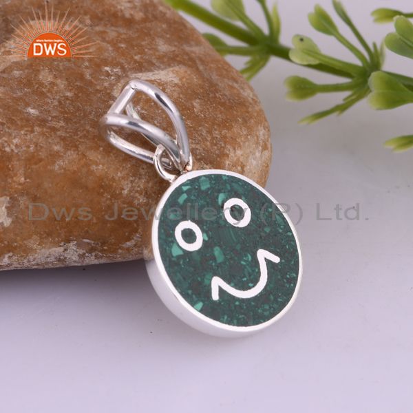 Malachite Coin Set Fine 925 Sterling Silver Abstract Pendant