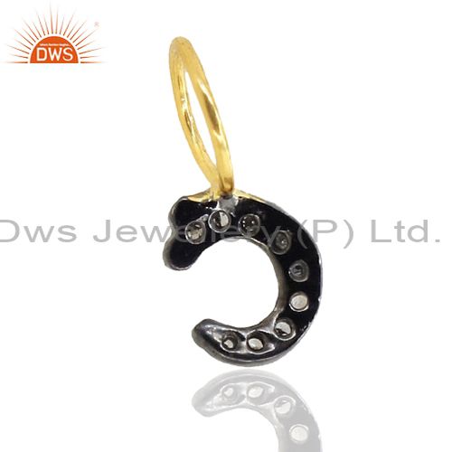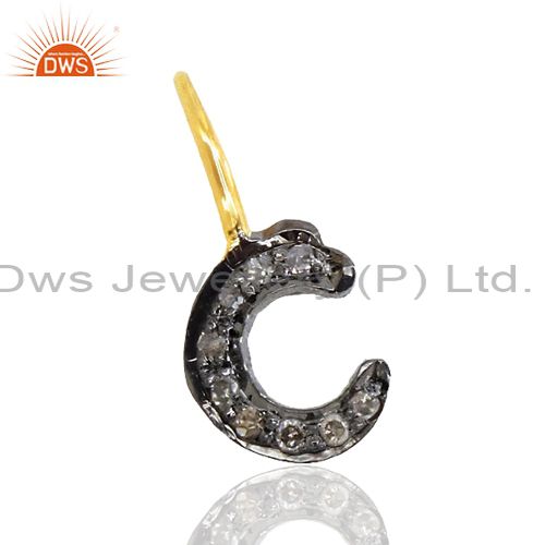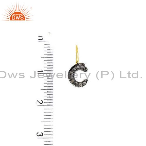 Micro Pave Diamond Sterling Silver C Initial Charm Pendant Gold Plated Jewelry