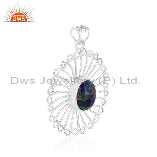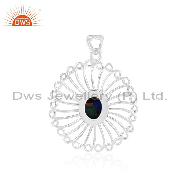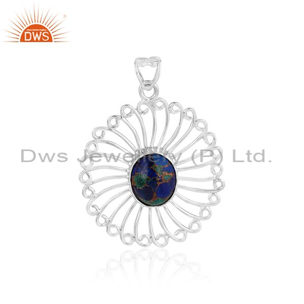 Mojave Copper Azurite Malachite Fine Silver Floral Pendant