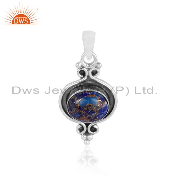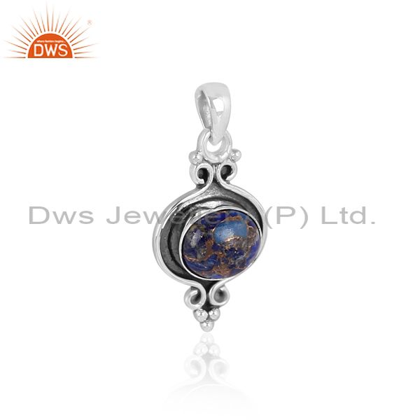 Mojave Copper Lapis Set Oxidized 925 Sterling Silver Pendant