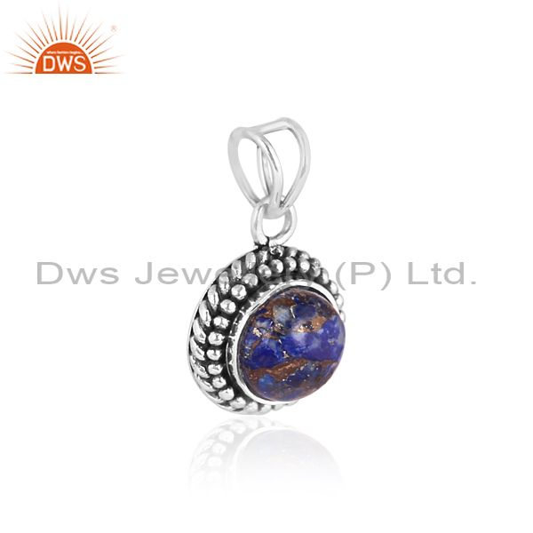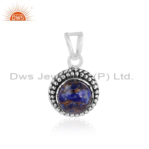 Mojave Copper Lapis Set Oxidized Silver Round Ethnic Pendant