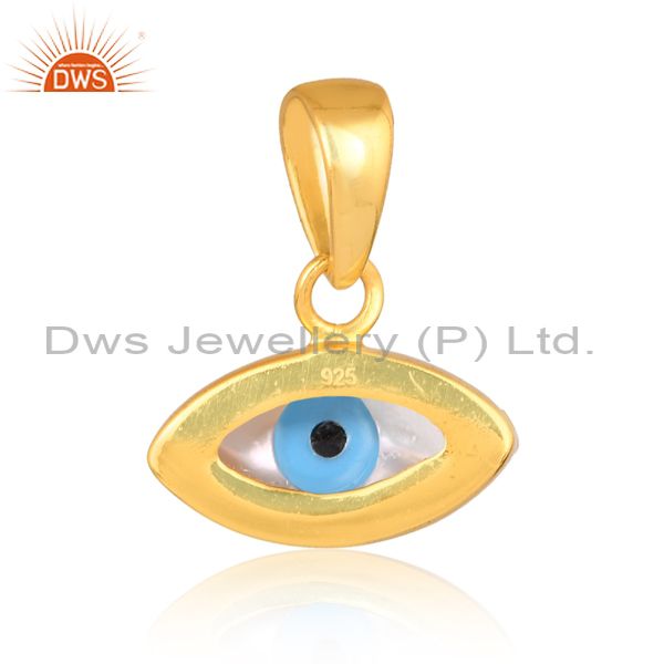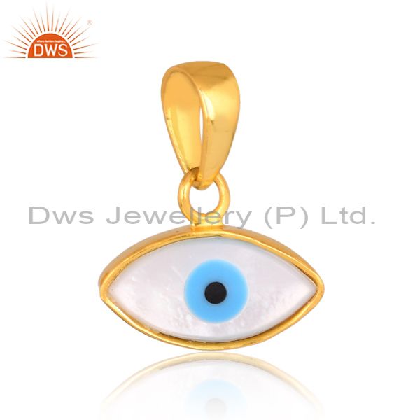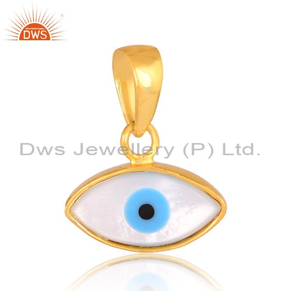 Mother Of Pearl Set 18K Gold On 925 Silver Evil Eye Pendant
