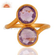 Natural Amethyst Gemstone Yellow Gold Plated Sterling Silver Connector