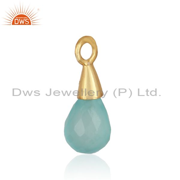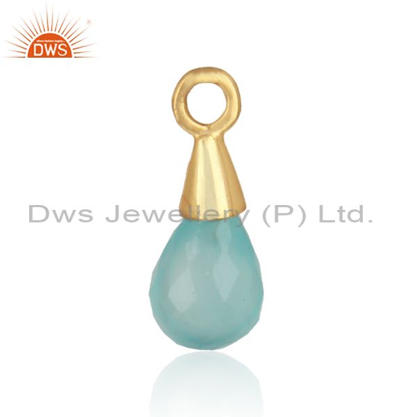 Natural Aqua Chalcedony Gemstone Gold Plated Silver Charm Finding