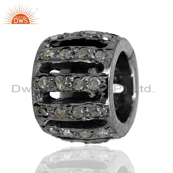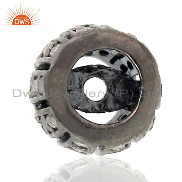 Natural Diamond Pave 925 Sterling Silver Rondelle Spacer Bead Finding 10X7 Mm