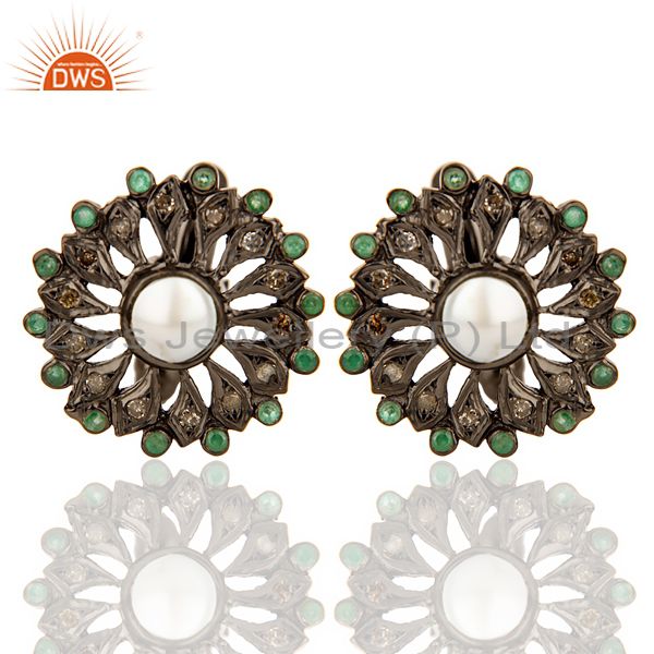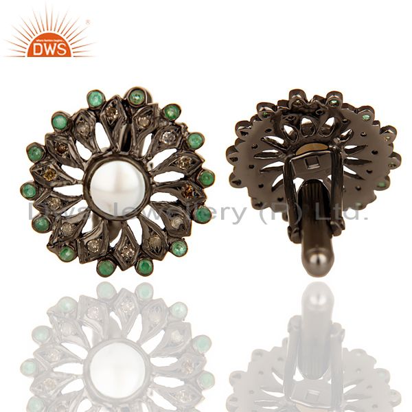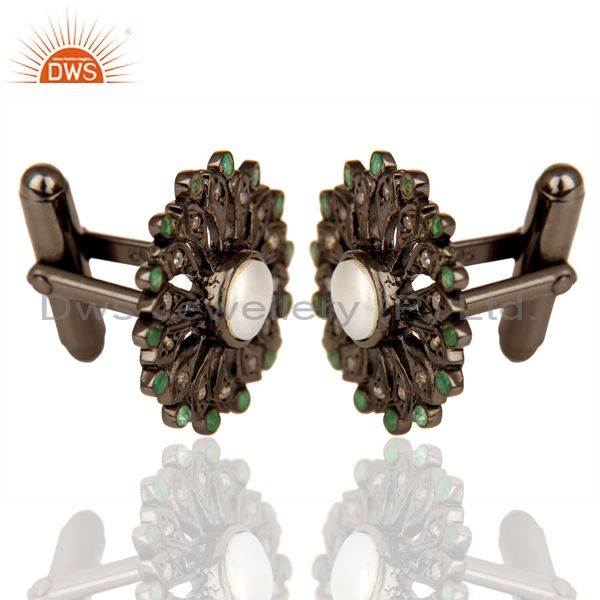 Natural Diamond Pearl Cuff Link Black Rhodium Plated,June Birthstone Cufflink