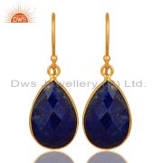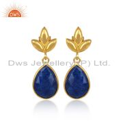 Natural Lapis Lazuli Gemstone Sterling Silver Connector With Yellow Gold Plated