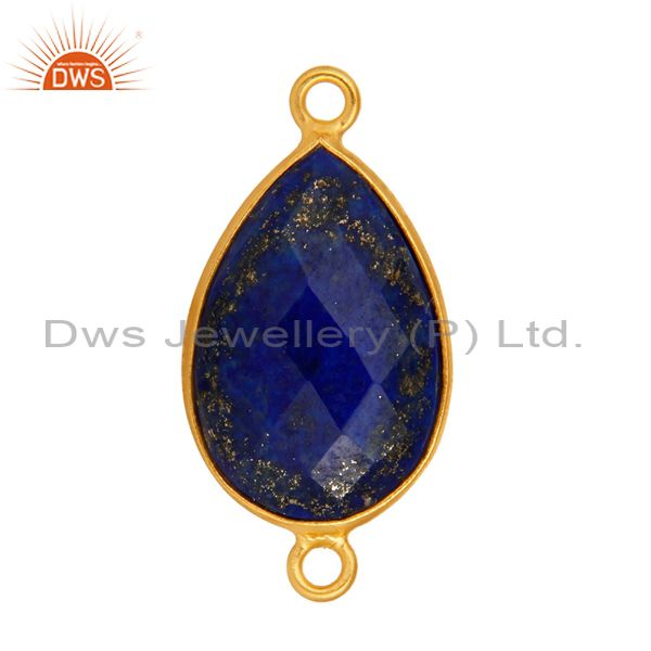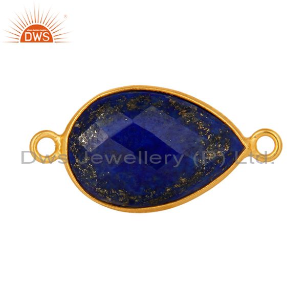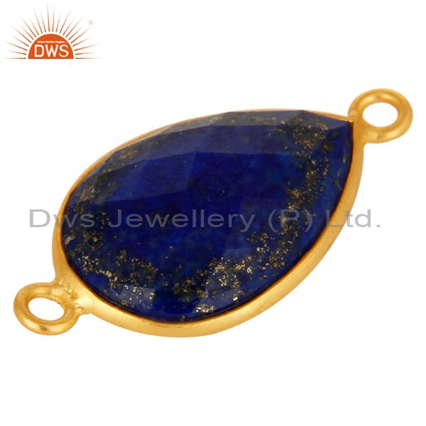 Natural Lapis Lazuli Gemstone Yellow Gold Plated Sterling Silver Connector