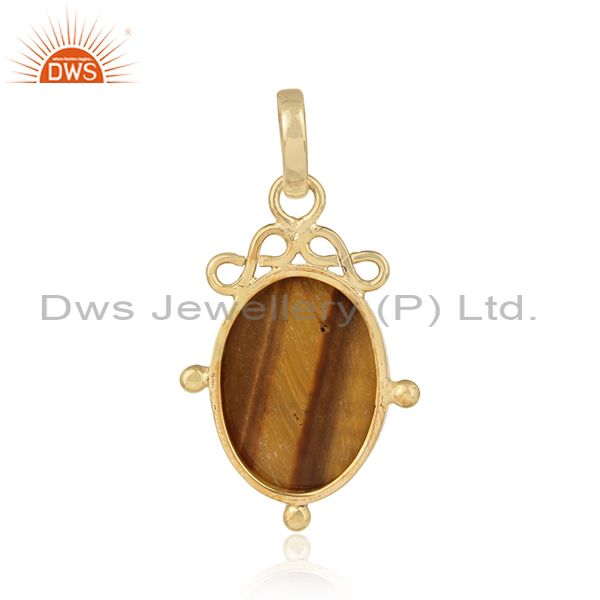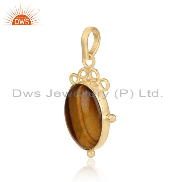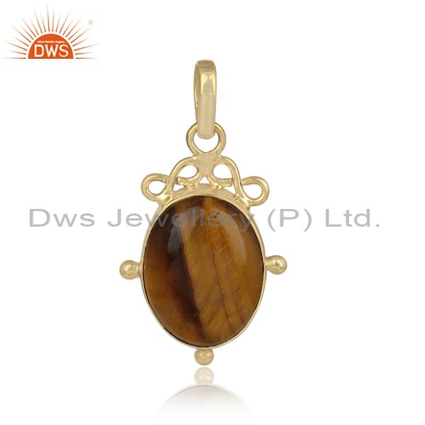 Natural Tiger Gemstone Designer Pendant Made In 24K Gold Over Brass