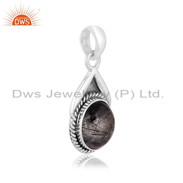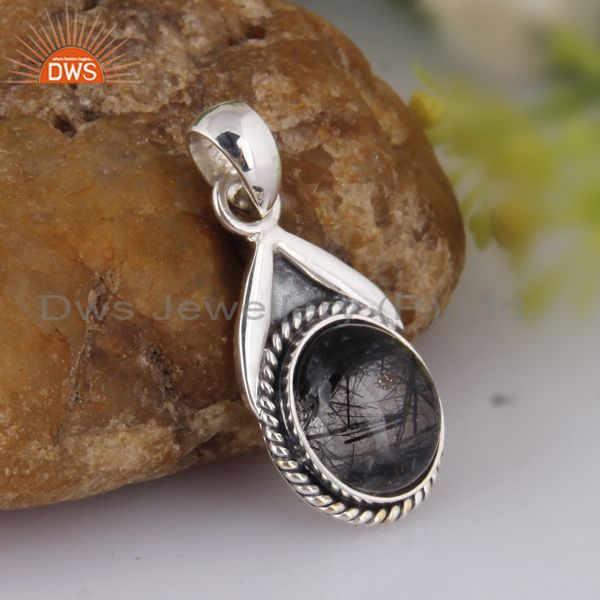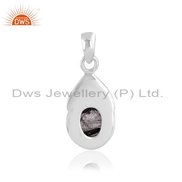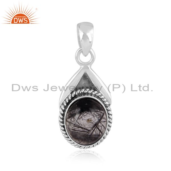 Oval Cut Black Rutile Set Oxidized Sterling Silver Pendant