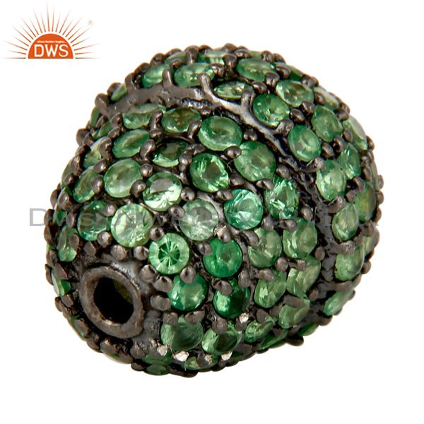 Oxidized Sterling Silver Pave Set Tsavorite Gemstone Beads Finding Charm Jewelry