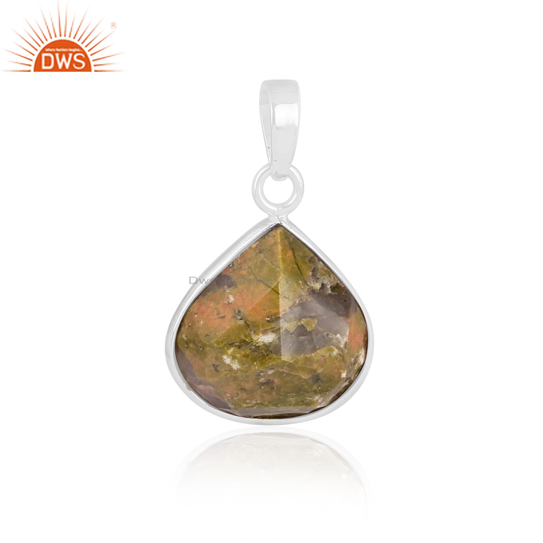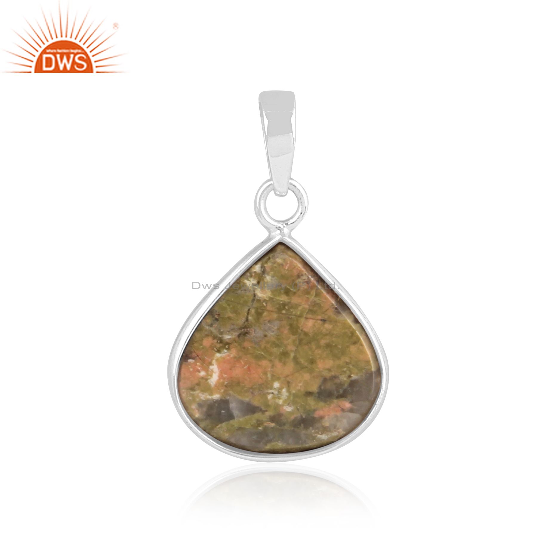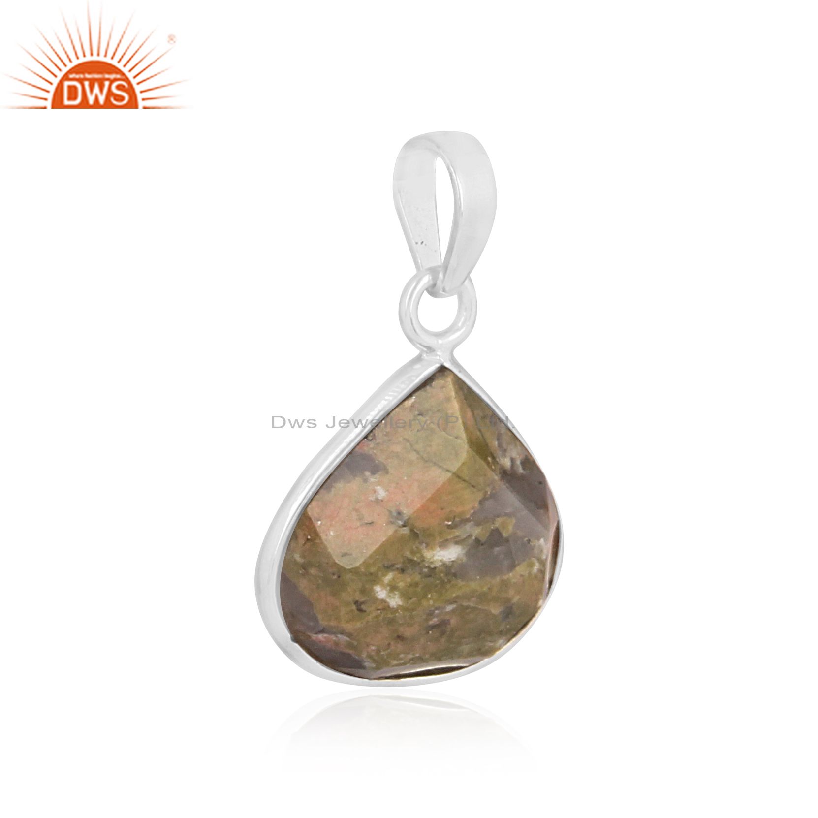 Pear Cut Unakite Set Fine Sterling Silver Classic Pendant