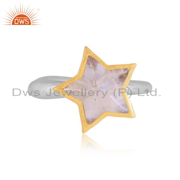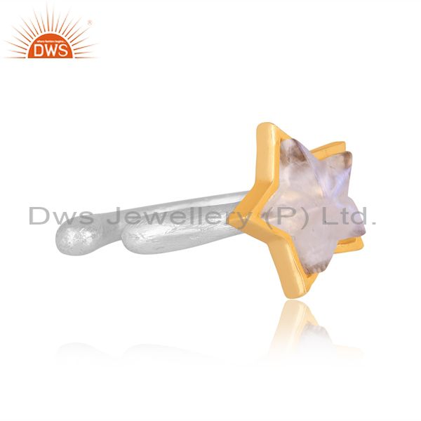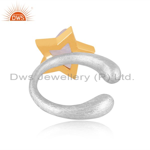 Rainbow Moon Stone Set Gold On Fine 925 Silver Star Ear Cuff