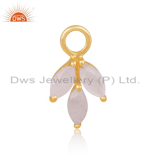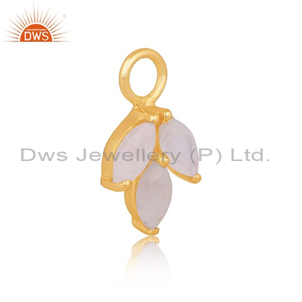 Rainbow Moon Stone Set Gold On Silver Floral Classic Pendant