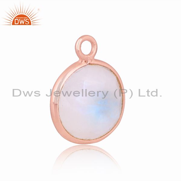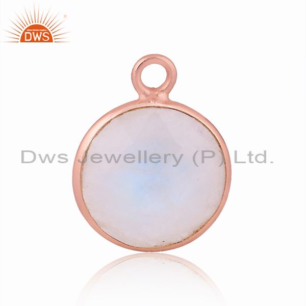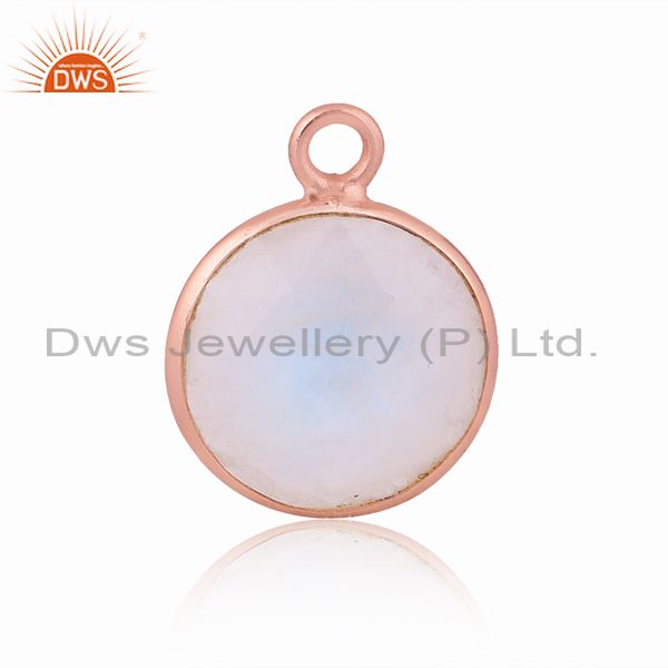 Rainbow Moon Stone Set Rose Gold On 925 Silver Round Pendant