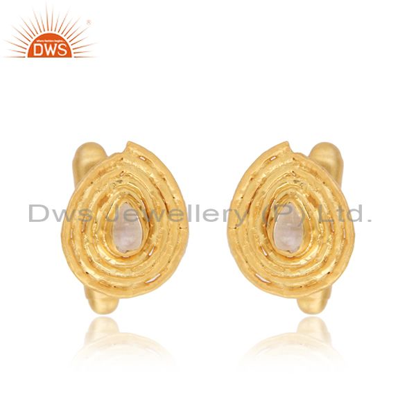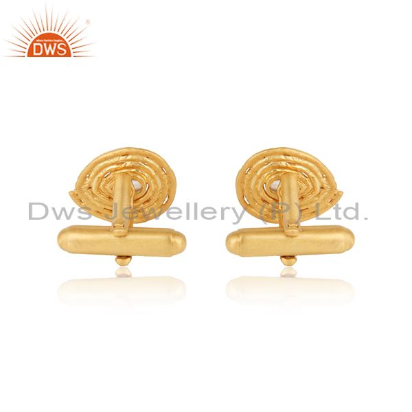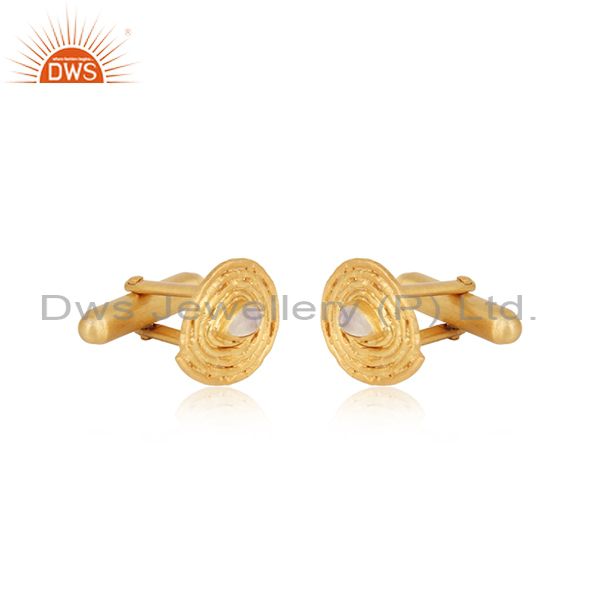 Rainbow Moonstone Gemstone Designer Gold Plated Silver Cufflinks