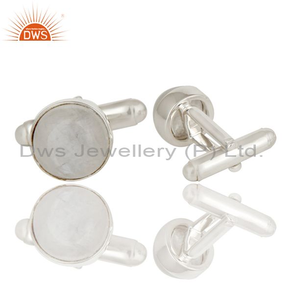 Rainbow Moonstone Solid 925 Sterling Silver Mens Fashion Cuff Links Jewellery