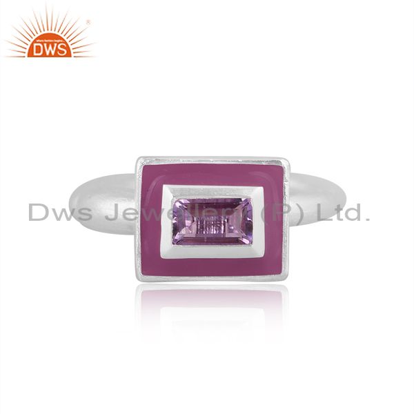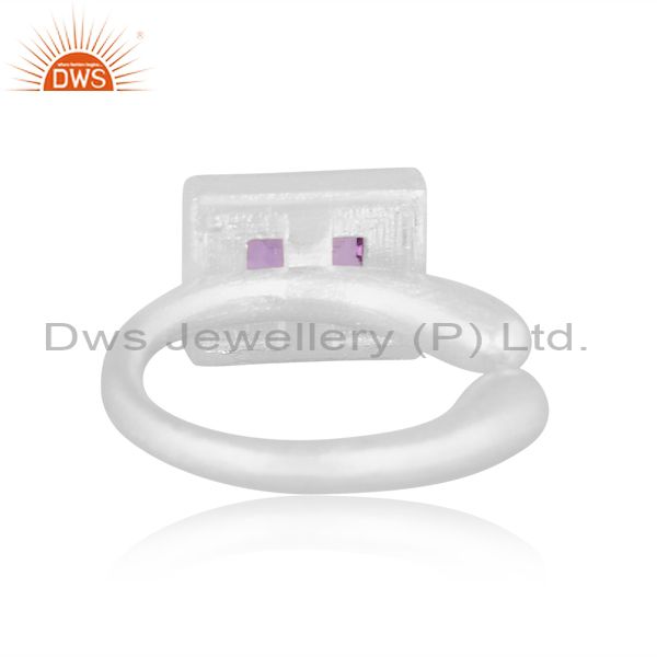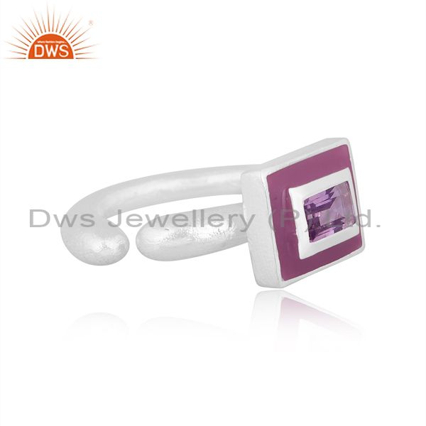 Rectangle Cut Amethyst Set Fine Silver Statement Ear Cuff